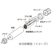 特殊専用コンデンサの内部導体には、帯状に加工された高純度アルミニウム箔を採用しており、見かけ上の表面積はわずか100cm2(10cm×10cm)程度ですが、導体表面の特殊エッチング処理により、海綿質構造に似た空洞が無数に形成されています。